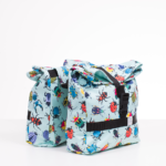 Kétrészes, tehát a csomagtartó mindkét oldalán egy-egy lelógó táskából álló bicikli csomagtartó táska. Szobanövény mintás softshell anyagból készült, pántjai, a csatja és egyéb műanyag kellékei feketék. Szája rollos, tehát a mérete kitekerve bővíthető. Oldalfala mindkét oldalon egy-egy patenttal összecsatolható, így a táska mélysége csökkenthető. A csomagtartóhoz nemcsak annak felemelhető részével rögzíthető, hanem a felső részre varrt pántot a csomagtartó alatt átvezetve, majd a pántot felül, az odavarrt csattal összecsatolva biztonságosan fixálhatjuk. A táska belső hátfalára egy zseb került, amiben a műanyag merevítőlap található, így ez mosás esetén könnyen kivehető.