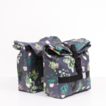 Kétrészes, tehát a csomagtartó mindkét oldalán egy-egy lelógó táskából álló bicikli csomagtartó táska. Szürke softshell anyagból készült, pántjai, a csatja és egyéb műanyag kellékei feketék. Szája rollos, tehát a mérete kitekerve bővíthető. Oldalfala mindkét oldalon egy-egy patenttal összecsatolható, így a táska mélysége csökkenthető. A csomagtartóhoz nemcsak annak felemelhető részével rögzíthető, hanem a felső részre varrt pántot a csomagtartó alatt átvezetve, majd a pántot felül, az odavarrt csattal összecsatolva biztonságosan fixálhatjuk. A táska belső hátfalára egy zseb került, amiben a műanyag merevítőlap található, így ez mosás esetén könnyen kivehető.