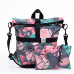 Legújabb táskánk a hátizsák EXTRÁKKAL. Kívül a 2023-as tavasz-nyári CAMP kollekció rózsaszín, hegyekkel díszített softshell anyagából, belül fekete vászon béléssel készült, cipzáros hátizsák. A vállpántok mellett ez a modell rendelkezik fölül két kézi pánttal is. A táskán kívül, oldalt egy kulacstartó kapott helyet, elől pedig egy nagy, patenttal és csattal egyaránt záródó zseb. A csattal ellátott heveder nemcsak a külső zseb lezárására szolgál, hanem piknik plédet, de akár egy széldzsekit is hozzá erősíthetünk. Akárcsak a többi hátizsákunknak, ennek a típusnak is van egy cipzáros belső zsebe. Ez a „zseb” két patenttal rögzíthető a táska belsejéhez, de külön neszeszerként vagy koktéltáskaként, sőt övre/övtáskára fűzve is hordható. A hátizsák pántjai fekete színűek, puha szivaccsal ellátottak. A csatja feketék, a többi műanyag kellék is. A hátizsák EXTRÁKKAL típusnak a különlegessége, hogy hátul egy rejtett zsebben egy egy centiméter vastag puha merevítő található, ami kellemesen puhává teszi a táska viselést, közben tartást ad a hátizsáknak. Ez a merevítő könnyűszerrel eltávolítható, így ez a táskánk is mosógépben ugyanúgy tisztítható, mint a többi modell.