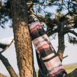 Jógamatrac szállítására tervezett táska. Kívül a 2023-as tavasz-nyári CAMP kollekció kék, hegyekkel díszített softshell anyagából, belül fekete vízlepergetős, összehúzható szájjal készült. Kívül egy nagyobb zsebet kapott, amibe belefér a bérlet, telefon vagy éppen a jógacipő. Fekete hevederből készült keresztbe vethető pántja állítható, de akár le is csatolható.