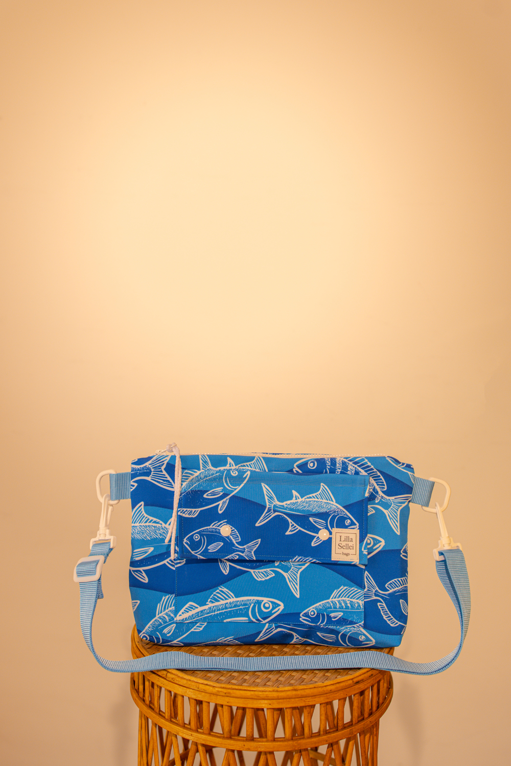 Kézben, vállon, keresztbe vetve, de bújtatóinak hála akár egy övre vagy a mellé külön megvásárolható derékpántra felfűzhető is viselhető, kis méretű táska. Kitűnő választás azokra az alkalmakra, amikor anya kimenőt kap. Kapd fel, amikor színházban, koncerten vagy buliban mész, amikor kevés holmit szeretnél csak magaddal vinni! Kívül a 2026-os tavasz-nyári ADRIA kollekció halmintás softshell anyagából, belül kék a vászonbéléssel készült. Műanyag kellékei fehérek, a hevederek világos kék színűek. Vállpántja leszerelhető. Szája cipzárral záródik, kívül egy nagy méretű patentos zsebbel is rendelkezik.