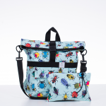 Közepes méretű (a variálható hátizsáknál nagyobb, de a nagyméretű hátizsáknál kisebb) hátizsák, kívül rajzolt bogarakkal díszített softshell anyagból, belül fekete vászon béléssel készült, rollos típusú hátizsák. A táskán elől található egy két patenttal záródó külső zseb. A cipzáros belső zseb pedig két patenttal rögzíthető a táska belsejéhez, de külön neszeszerként vagy koktéltáskaként, sőt övre/övtáskára fűzve is hordható. Pántjai fekete színűek, puha, fekete szivaccsal ellátottak, valamint a hátrésze is puha. A csatja feketék és a többi műanyag kellék is. A rollosan letekerhető szája egy csattal és cipzárral záródik. A hátizsák száját kitekerve a táska űrtartalma bővíthető.