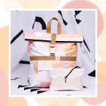 Közepes méretű (a variálható hátizsáknál nagyobb, de a nagyméretű hátizsáknál kisebb), kívül softshell rózsaszín-türkiz paca mintás anyagból, belül szürke vászon béléssel készült, rollos típusú hátizsák. A táskán elől található egy két patenttal záródó külső zseb. Cipzáros belső zsebe pedig két patenttal rögzíthető a táska belsejéhez, de külön neszeszerként vagy koktéltáskaként, sőt övre/övtáskára fűzve is hordható. Pántjai szürkék, puha, fekete szivaccsal ellátottak, valamint a hátrésze is puha. A csatja fehérek, a többi műanyag kellék is. A rollosan letekerhető szája egy csattal és cipzárral záródik. A hátizsák száját kitekerve a táska űrtartalma bővíthető.