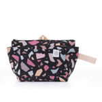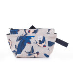 Cipzárral záródó, nagyméretű kozmetikai táska. Kívül vízlepergetős, házak mintás softshell anyagból, belül egy vékonyabb, kék vízhatlan béléssel készült. Ajánljuk utazásokhoz vagy hétköznapi használatra azoknak, akik a táskájukban nagyobb sminkfelszereléssel járnak. Oldalsó, sötétkék kézipántjánál fogva könnyen vihető ide-oda, a szintén sötétkék hevederből készült, hátsó kis pánttal pedig praktikusan fogasra is felakasztható.