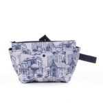 Cipzárral záródó, nagyméretű kozmetikai táska. Kívül vízlepergetős, terrazzo mintás softshell anyagból, belül egy vékonyabb, fekete vízhatlan béléssel készült. Ajánljuk utazásokhoz vagy hétköznapi használatra azoknak, akik a táskájukban nagyobb sminkfelszereléssel járnak. Oldalsó, bézs kézipántjánál fogva könnyen vihető ide-oda, a szintén bézs színű hevederből készült, hátsó kis pánttal pedig praktikusan fogasra is felakasztható.