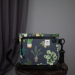 Kisméretű kifejezetten kulacsokhoz tervezett válltáska két extra zsebbel. Kívül szobanövény mintás softshell anyagból készült. Csatjai feketék, a derékpánt szintén. A táska szája összehúzható, így a kulacs biztosan nem esik ki belőle. Ez a verzió már két extra zsebet is kapott, az egyik oldalra egy lapos, patenttal záródó rekeszt, míg a másik oldalra egy bővebb, összehúzható zsebet. A zsebeknek köszönhetően nemcsak a kulacsodat kaphatod a válladra ezzel a táskával, de jut hely a mobilodnak, a kulcsodnak vagy éppen a papírzsebkendőnek is.
