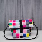 A már jól ismert, nagyméretű, rollos övtáskával azonos méretű mini válltáska, ami kézben, vállon vagy keresztbe vetve is hordható. Kívül bogaras mintájú softshell anyagból, belül fekete vászonból készült. Csatjai feketék, a hevederek szintén. A táska szája cipzárral és egy csattal záródik, rollosan bővíthető. Vállpátja állítható és a táskáról leszerelhető. Ajánljuk nyaraláshoz, városnézéshez, sétához, hétköznapokra, amikor a koktéltáska kicsinek bizonyul.