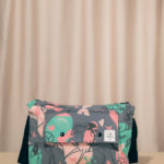 A már jól ismert, nagyméretű, rollos övtáskával azonos méretű mini válltáska, ami kézben, vállon vagy keresztbe vetve is hordható. Kívül nyár virágos softshell anyagból, belül szürke vászonból készült. Csatjai fehérek, a hevederek szürkék. A táska szája cipzárral és egy csattal záródik, rollosan bővíthető. Vállpátja állítható és a táskáról leszerelhető. Ajánljuk nyaraláshoz, városnézéshez, sétához, hétköznapokra, amikor a koktéltáska kicsinek bizonyul.