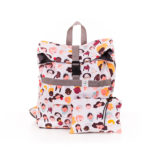 Ez a modell a 2021-es tavasz-nyári CSAJOK kollekció egyik darabja, kívül csajok mintás softshell anyagból, belül szürke vászon béléssel és szürke bújtató hevederrel készült.
