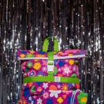 Nagyméretű, kívül a LSB x Zubor Rozi 2025 tavasz-nyár kollekció virágmintás softshell anyagából, belül citromsárga vászon béléssel készült rollos típusú hátizsák. A táskán elől található egy két patenttal záródó külső zseb, cipzáros belső zsebe pedig két patenttal rögzíthető a táska belsejéhez, de külön neszeszerként vagy koktéltáskaként, sőt övre/övtáskára fűzve is hordható. Pántjai halványzöld színűek, puha szivaccsal ellátottak. A csatja fehérek, a többi műanyag kellék is. A rollosan letekerhető szája egy csattal és két patenttal záródik, a száját kitekerve a táska űrtartalma bővíthető. A táska egyik oldalán kétkocsis cipzár fut végig, megkönnyítve a pakolást. A táska oldalrészei patenttal zárhatóak össze, így a hátizsák szélessége szabályozható.
