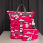 Nagyméretű, kívül darvak mintás softshell anyagból, belül szürke vászon béléssel készült, rollos típusú hátizsák. A táskán elől található egy két patenttal záródó külső zseb, cipzáros belső zsebe pedig két patenttal rögzíthető a táska belsejéhez, de külön neszeszerként vagy koktéltáskaként, sőt övre/övtáskára fűzve is hordható. Pántjai szürkék színűek, puha szivaccsal ellátottak. A csatja fehérek, a többi műanyag kellék is. A rollosan letekerhető szája egy csattal és két patenttal záródik, a száját kitekerve a táska űrtartalma bővíthető. A táska egyik oldalán kétkocsis cipzár fut végig, megkönnyítve a pakolást. A táska oldalrészei patenttal zárhatóak össze, így a hátizsák szélessége szabályozható.