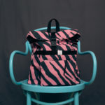 Nagyméretű, kívül a 2023/2024-es őszi-téli KASTÉLY kollekció leopárd mintás softshell anyagából, belül fekete vászon béléssel készült, rollos típusú hátizsák. A táskán elől található egy két patenttal záródó külső zseb, cipzáros belső zsebe pedig két patenttal rögzíthető a táska belsejéhez, de külön neszeszerként vagy koktéltáskaként, sőt övre/övtáskára fűzve is hordható. Pántjai sötétszürke színűek, puha szivaccsal ellátottak. A csatja feketék, a többi műanyag kellék is. A rollosan letekerhető szája egy csattal és két patenttal záródik, a száját kitekerve a táska űrtartalma bővíthető. A táska egyik oldalán kétkocsis cipzár fut végig, megkönnyítve a pakolást. A táska oldalrészei patenttal zárhatóak össze, így a hátizsák szélessége szabályozható.