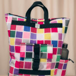 Nagyméretű, kívül lovas mintás softshell anyagból, belül fekete vászon béléssel készült, rollos típusú hátizsák. A táskán elől található egy két patenttal záródó külső zseb, cipzáros belső zsebe pedig két patenttal rögzíthető a táska belsejéhez, de külön neszeszerként vagy koktéltáskaként, sőt övre/övtáskára fűzve is hordható. Pántjai feketék színűek, puha szivaccsal ellátottak. A csatja feketék, a többi műanyag kellék is. A rollosan letekerhető szája egy csattal és két patenttal záródik, a száját kitekerve a táska űrtartalma bővíthető.  A táska egyik oldalán kétkocsis cipzár fut végig, megkönnyítve a pakolást. A táska oldalrészei patenttal zárhatóak össze, így a hátizsák szélessége szabályozható.
