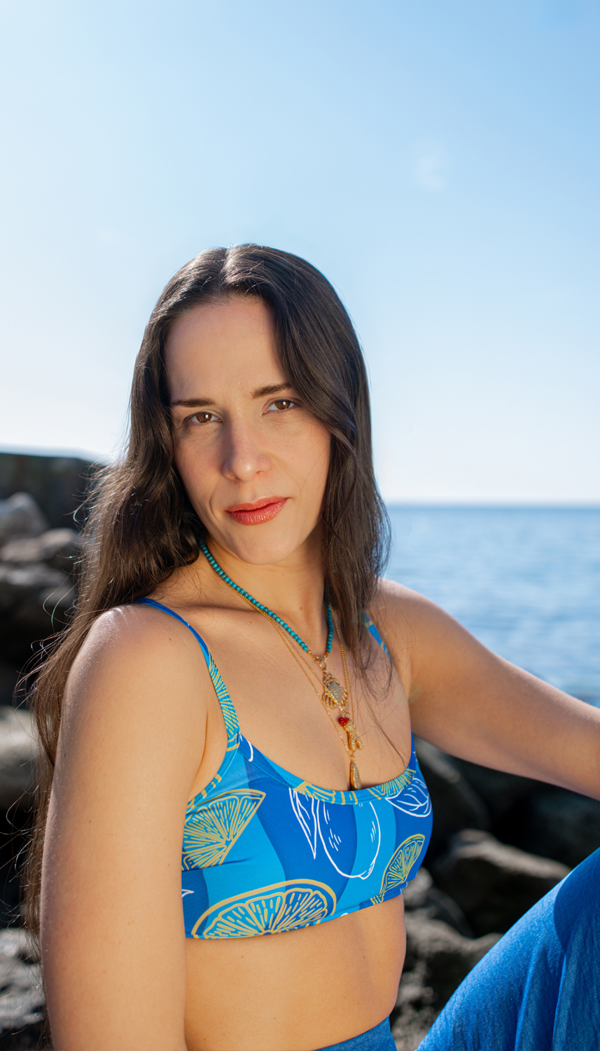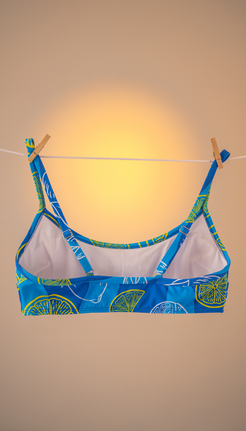 A 2026-os tavasz-nyári ADRIA kollekciónkkal végre megérkeztek a táskákkal harmonizáló fürdőruhák. A 2026-os fürdőruha palettánk része ez a citrom mintás anyagból készült, állítható pántú, párnázott bikinifelső, mellrészen tűzéssel.