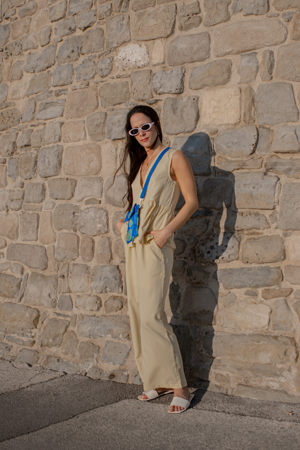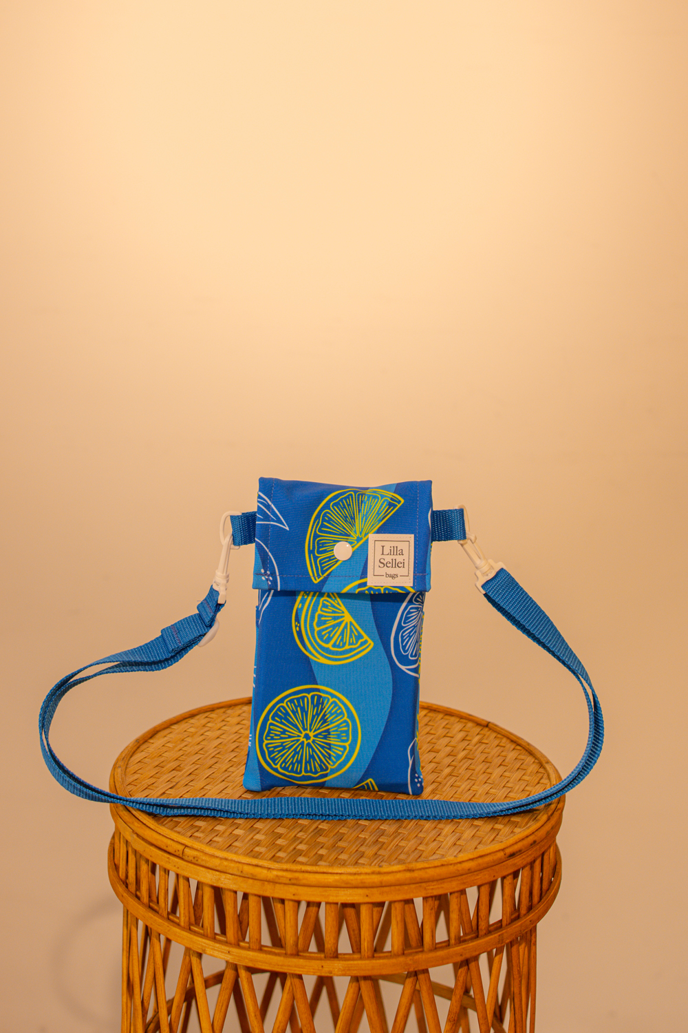 Kisméretű, kifejezetten telefonokhoz tervezett válltáska hátul egy extra, patentos zsebbel. Kívül a 2026-os tavasz-nyári ADRIA kollekció citrommintás softshell anyagból készült. Csatjai fehérek, a pánt 2 centiméter széles, kék hevederből készült. Fedele lehajtható, patenttal záródik, így a telefond biztonságban lehet benne. Kapd fel ezt az extra kicsi táskát, amikor a telefonodon kívül mást nem szeretnél magaddal vinni.