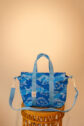 Kívül a 2026-os tavasz-nyári ADRIA kollekció halmintás softshell anyagából, belül kék vászonbéléssel készült variálható válltáska. A kézben és vállon egyaránt hordható táskához tartozik egy felcsatolható pánt is, így keresztbe vetve is viselhető. Cipzáros belső zsebe két patenttal rögzíthető a táska belsejéhez, de külön neszeszerként vagy koktéltáskaként is hordható. A neszeszeren kívül még két tároló rekesze van: egy patentos zseb a táska elején, egy zseb pedig a belsejében. Pántjai világos kék színűek, a csatok és a többi műanyag kellék fehér színű. Szája cipzárral záródik.